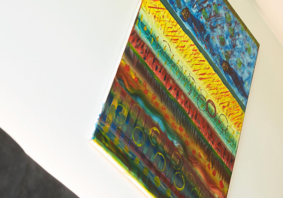 In unseren Ferienwohnungen finden Sie zahlreiche Bilder von Michael Muggi Reiterer. Lebensküstler, Musikant, Lebemensch, Philosoph, Pubblic Muggi Relation, Profikoch, Berater und vor allem Mensch. Man könnte viel über diesen Menschen erzählen, man sollte ihn erlebt haben. Wie seine Bilder, facettenhaft, farbenfroh so wie er einfach ein bunter Hund. Elemente rot, blau, schwarz, weiss und vor allem das Bunte sticht in seinen Bilder hervor. Klare Annoncen von Freude, Friede, Trauer, wo der Künstler durch seine prickelnde Art sein Leben oder das Leben „The life is good“ in den Bilder wiederspiegeln wird. Die Bilder sind alle Originale und jedes ist anders, wunderbar anders. Also Impressionen des Lebens.